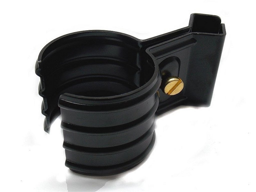 Supporto in metallo di colore verde. Adatto per montare una torcia, di diametro almeno di 3,5 cm, sulla canna del fucile o della carabina. Dimensioni del supporto: altezza 8,5 cm, larghezza 5,3 cm. Peso lordo: 110 grammi.