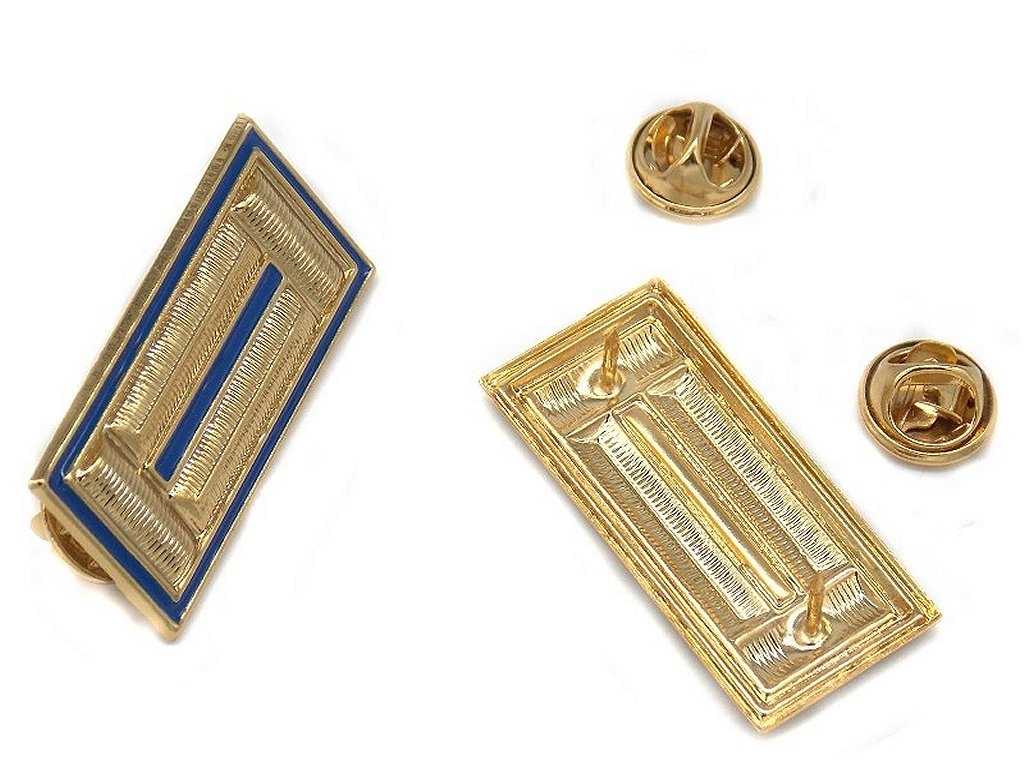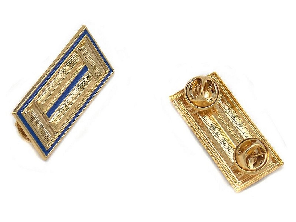 Coppia di alamari per camicia in colore blu e dorato. Lunghezza 3,8 cm, larghezza 1,8 cm. Dotata di due chiodini a morsetto. Prodotto in Italia. Peso lordo: 7 grammi.