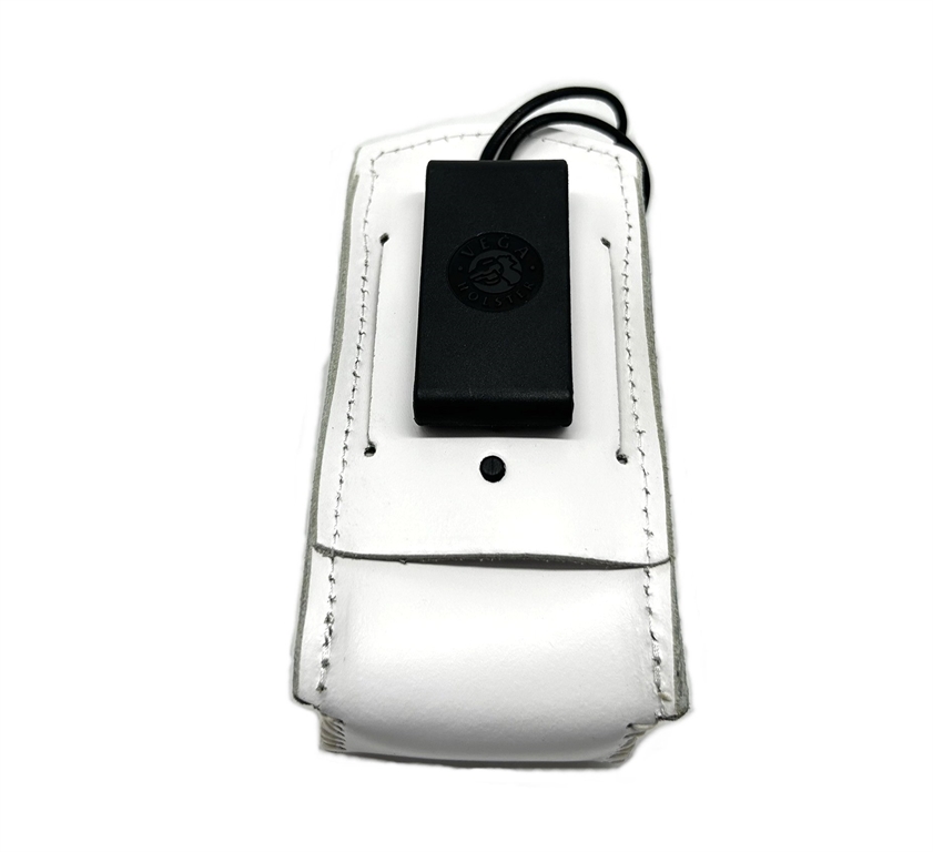 Dotato di elastici laterali, passante con molla in polimero per cinturoni. Altezza 14,5 cm (regolabile), larghezza 5,5 cm. Colore bianco. Peso lordo: 120 grammi. Prodotto in Italia.