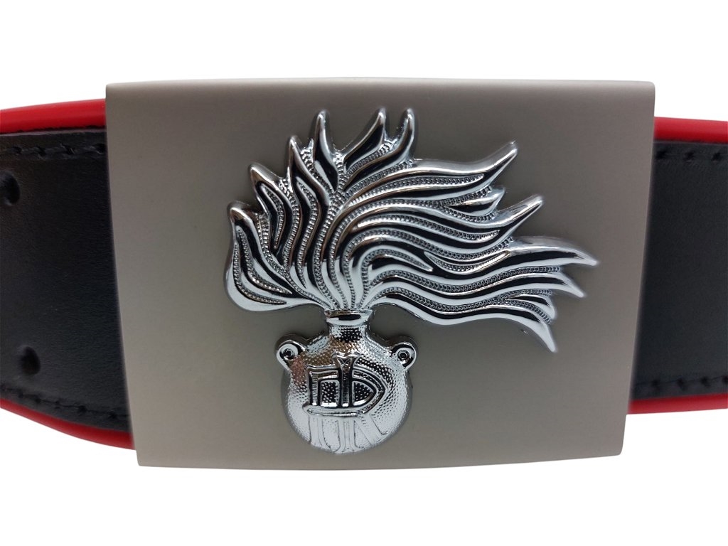 Cinturone estivo ordinanza Carabinieri. Larghezza cm 5. Fibbia in metallo. S (girovita 81-95 cm), M (girovita 96-110 cm), L (105-119 cm), XL (121-134 cm). Prodotto vendibile esclusivamente ad appartenenti all'Arma dei Carabinieri. Peso lordo: 350 grammi. Prodotto in Italia.