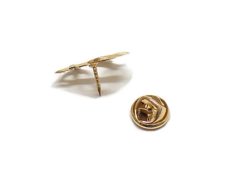 Ancoretta marina in metallo leggero dorato con chiusura a morsetto. Si può mettere sia nella giacca che nella camicia. Lunghezza 2,3 cm, larghezza massima 2 cm. Peso lordo: 2 grammi.