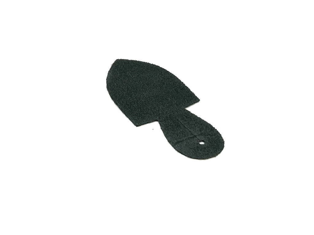 Porta fregio in pelle con asola per attacco al bottone della camicia. Dimensioni spazio scudetto: larghezza massima 4 cm, altezza 5,2 cm. forma triangolare di spessore 2 mm. Colore nero. Legenda: h= altezza, l= larghezza massima. Peso lordo: 3 grammi.