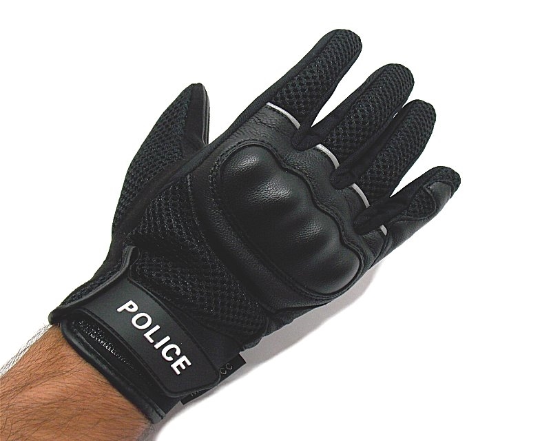 Guanto in tessuto traspirante sul dorso per una maggiore aerazione, e in pelle scamosciata sul palmo per un maggiore grip, protezione delle nocche con inserto in polimero, inserti ad alta visibilità, scritta Police sul laccio di chiusura in gomma con regolazione a velcro. Colore nero. Taglie disponibili: S, M, L, XL. Circonferenza del palmo in cm: S (22-23 cm), M (24-25 cm), L (26-27 cm), XL (27,5-28 cm), XXL (28,5 cm). Per scegliere la taglia seguire le indicazioni riportate nella foto. Peso lordo: 135 grammi.