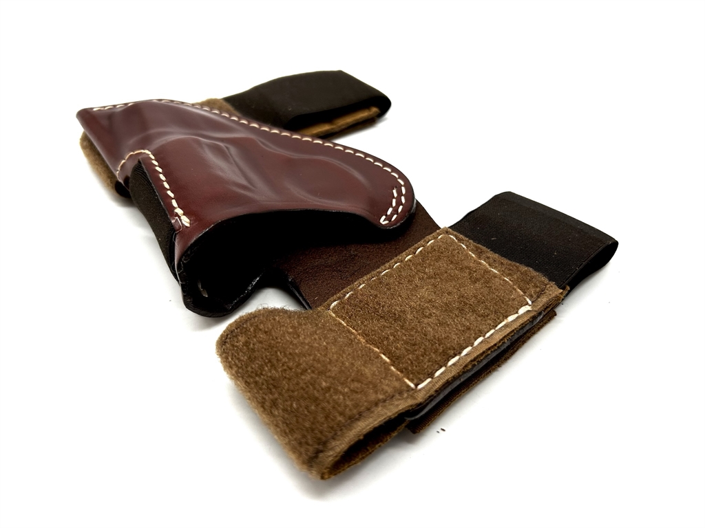 Fondina da caviglia capovolta con elastico, ritenzione dell'arma tramite elastico rinforzato, estrazione a strappo. Sformata in cuoio ingrassato marrone. Prodotta per le seguenti armi: revolver 2 pollici, j frame, taurus 2 pollici, ruger sp101, colt detective e pyton 2,5 pollici. Peso lordo: 185 grammi. Prodotto in Italia.