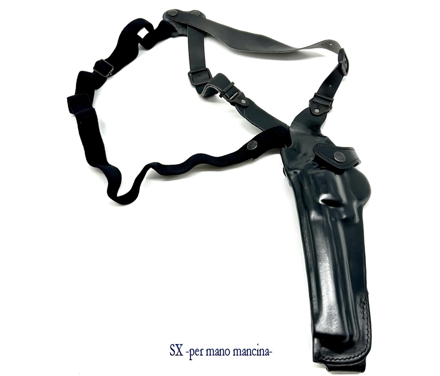 Fondina ascellare verticale in cuoio sformato con sgancio rapido. Disponibile nei colori nero o marrone. Prodotta per Beretta 92, 98, 81, 82, 84, 85, 90 two, 98 A1, px4 storm, 8000, 9000, colt 1911, glock 17, 19, 20, 21, 22, 23, 25, 26, 27, 28, 29, 30, 36, 31, 32, 36, 37, hk usp, walther p99, ppq, p99q, revolver 2,5, 4 e 6 pollici. Peso lordo: 295 grammi. Prodotto in Italia.