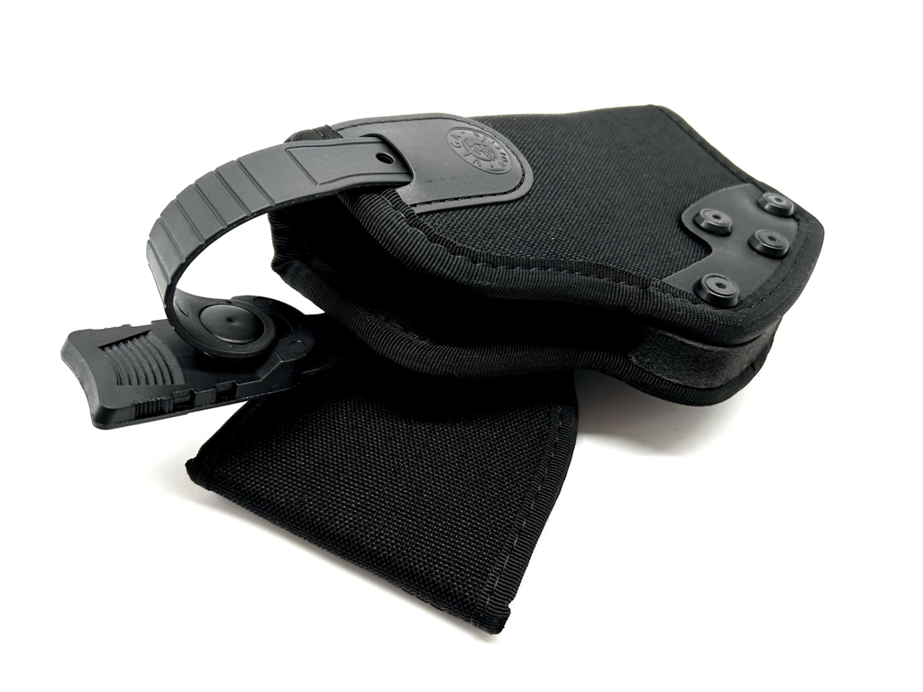 Fondina in cordura da fianco, sistema di sgancio rapido regolabile e amovibile. Supporto in cordura. Posizione verticale con inclinazione. Il passante è per cinturoni alti 5 cm. Prodotta per large auto tipo beretta 92 o 98 fs, beretta apx, revolver 4, sig 228,229, beretta 8000, glock 17/19, sig sauer p266, beretta 84 f, h&k usp-w. p99, ppq, p99q, glock 20, px4 storm. Colori disponibili: nero, verde, blu o bianco. Peso lordo: 300 grammi. Prodotto in Italia.