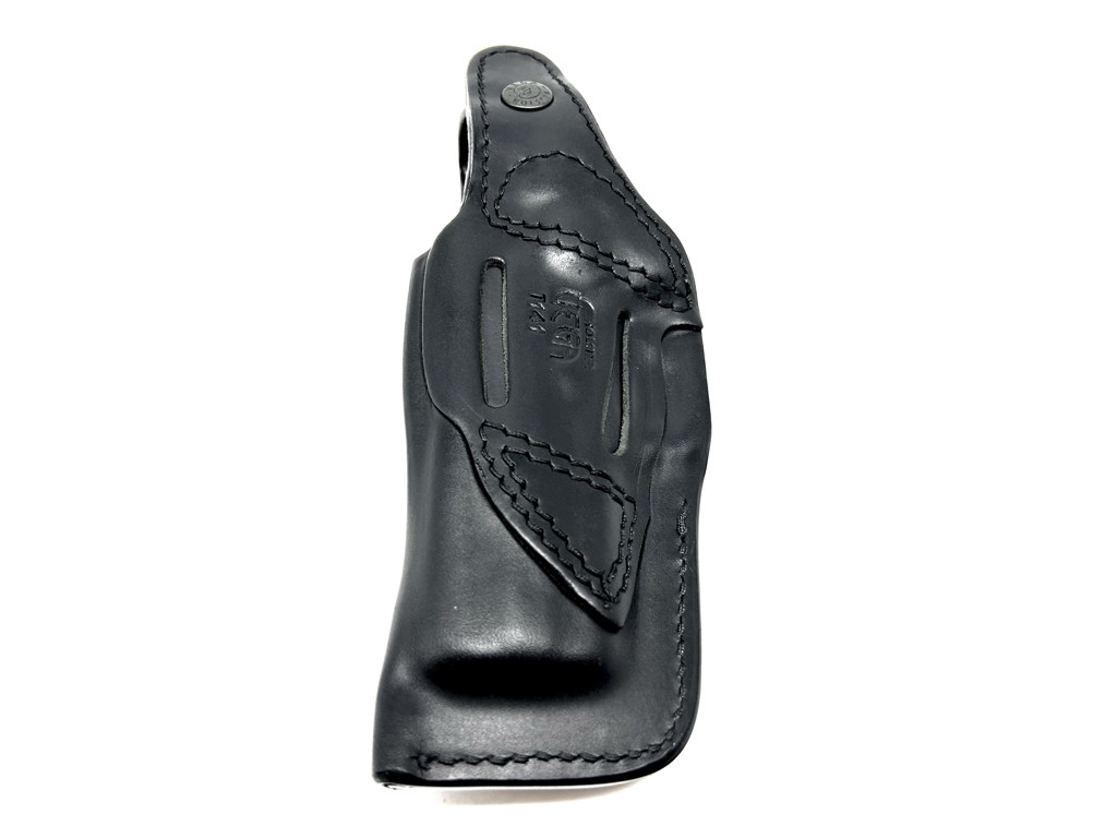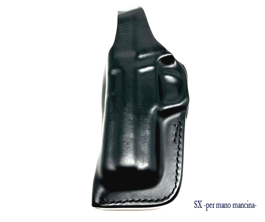 Fondina da cintura, doppia possibilità di inclinazione: sul fianco destro retta, o inclinata. Sformata in cuoio ingrassato marrone o nero. Prodotta per i seguenti modelli: Beretta px4 storm, 92, 98, 84, 8000, 9000, Beretta 70/71, Beretta 6,35 e baby auto, browing hp, colt 1911, revolver da 2 a 6 pollici, glock 17, 19, 20, 21, 22, 23, 25, 26, 27, 28, 29, 30, 32, 33, 36, 37, 38, hk usp compact, sig sauer p 220, 225, 226, taurus pt92, walther ppk, ppq, p99, p99q. Le asole del passante sono per cinture alte 4 cm. Peso lordo: 150 grammi.Prodotto in Italia.