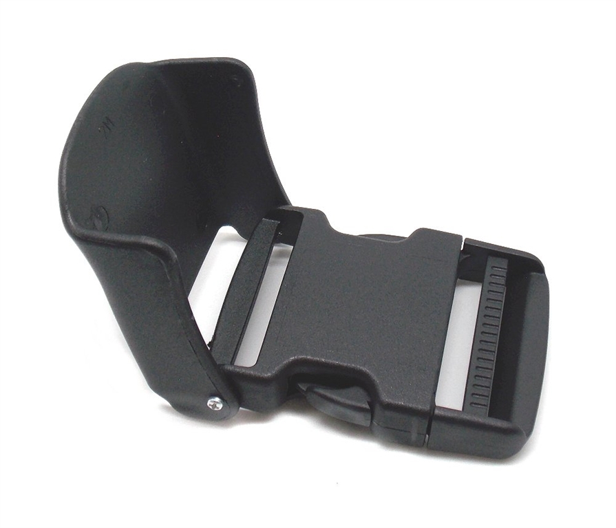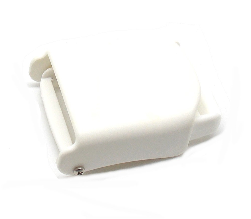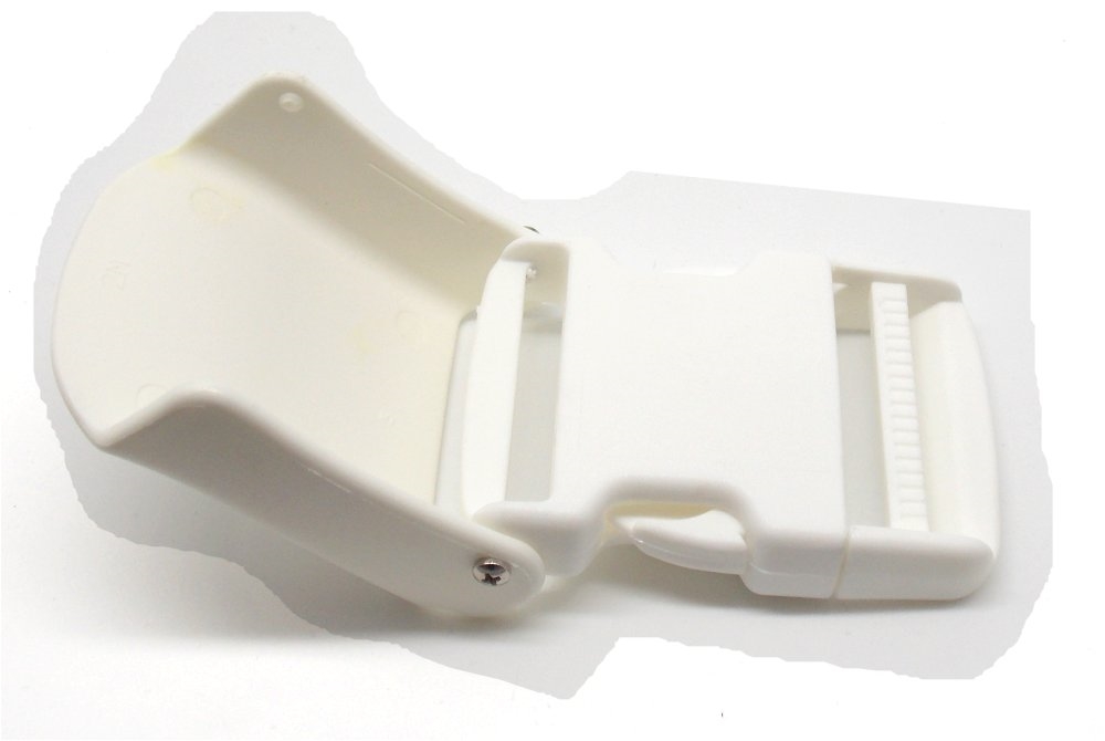 Fibbia in polimero a scatto con coprifibbia. Altezza 6,5 cm, larghezza 8,5 cm. Altezza asola 5 cm. Colori disponibili: nero, bianco. Peso lordo: 55 grammi. Prodotto in Italia.
