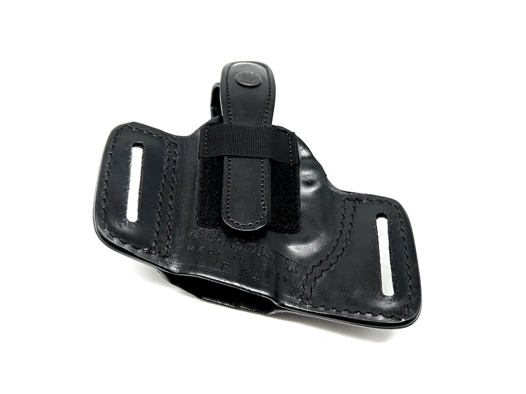Fondina in cuoio con due asole. Prodotta per: Beretta 92, 98, 84, 8000, px4 storm, 9000, 90 two, 98A1, Beretta APX, caracal c, caracal f, colt 1911, glock 17, 19, 20, 21, 23, 25, 26, 27, 29, 30, 31, 32, 33, 42, walther pps, p99, ppq, p99q, hk usp, sig suer pro 2022, p220, p226, p228, p229, spriengfield xd, taurus g3, revolver da 2,5 a 4 pollici, e baby auto Beretta. Le asole del passante sono per cinture alte 4 cm. Colori disponibili: nero o marrone. Peso lordo: 105 grammi. Prodotto in Italia.