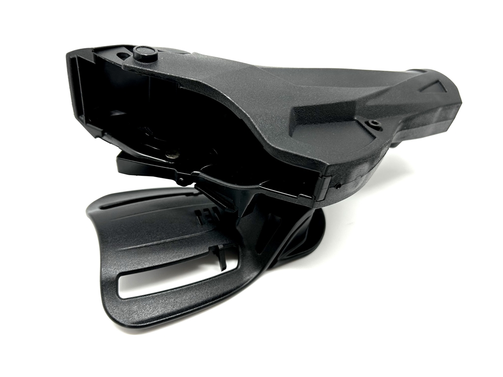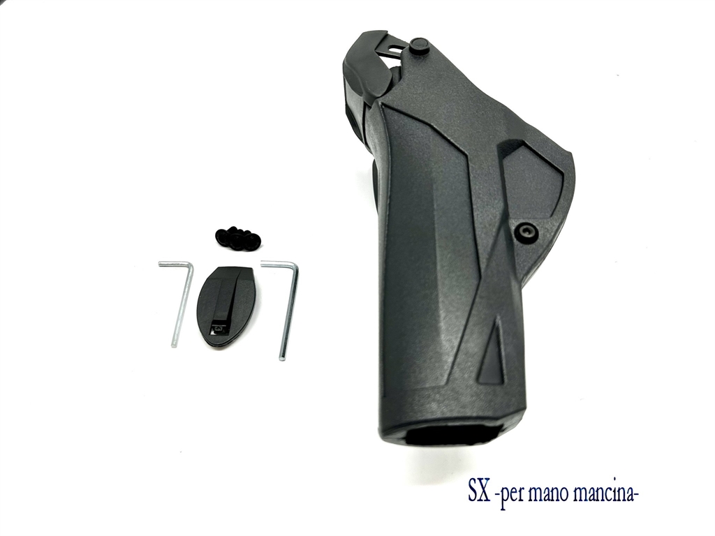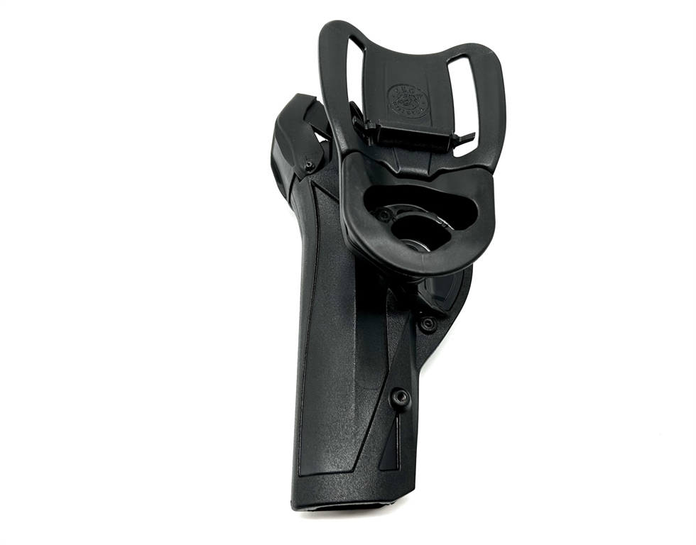 Fondina in polimero con livello di ritenzione 3. Il doppio sistema di sicura blocca l'arma sia nella parte superiore grazie al cappuccio girevole, che sul ponticello ( sicura automatica all'inserimento dell'arma in fondina). Per lo sgancio di entrambi i sistemi di sicurezza si agisce sullo stesso pulsante posto nella parte interna della fondina. Una vite di ritenzione regola la frizione della fondina sull'arma. Il passante tiene la fondina a distanza dal corpo. Le asole del passante sono per cinturoni alti fino a 6 cm. Brevetto internazionale. Disponibile: destra e sinistra. Colori: nero, verde, deserto. Peso lordo: 375 grammi. Prodotto in Italia.