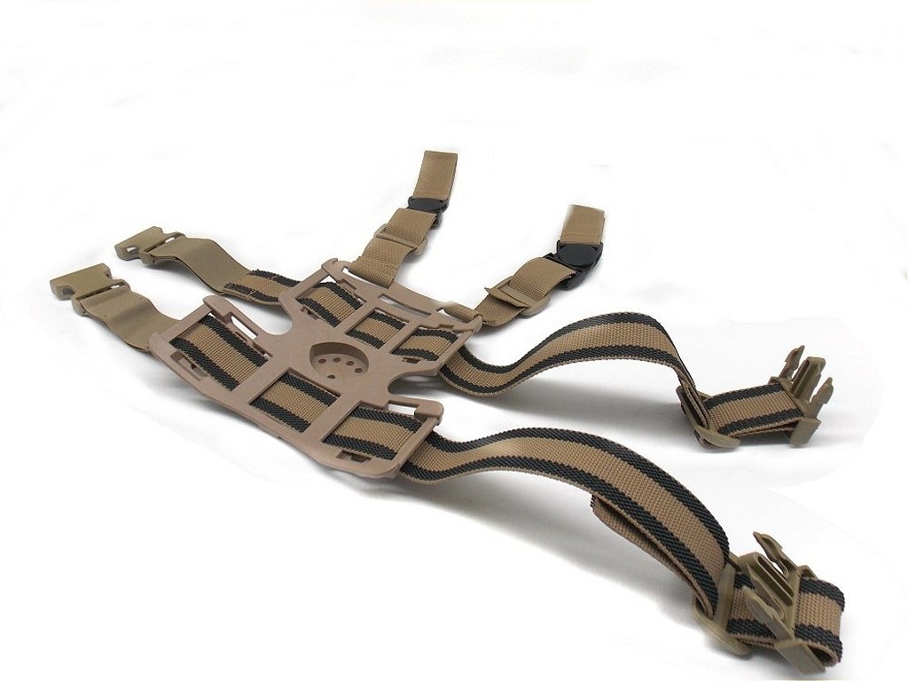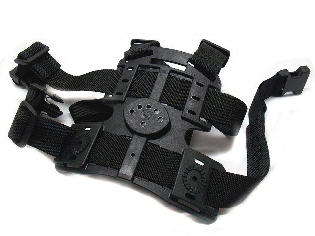 Piattaforma cosciale multiuso in polimero. Doppie fasce con binari antiscivolo per ancoraggio alla coscia. Doppia prolunga cosciale regolabile con fibbie girevoli e attacco a cintura con chiusura a velcro. Con doppia ruota dentata per l'inserimento del porta caricatore compatibile. Possibilità d'inserire un qualsiasi sistema molle di altezza compatibile. Colori disponibili: nero, verde, desert. Peso lordo: 385 grammi. Prodotto in Italia.