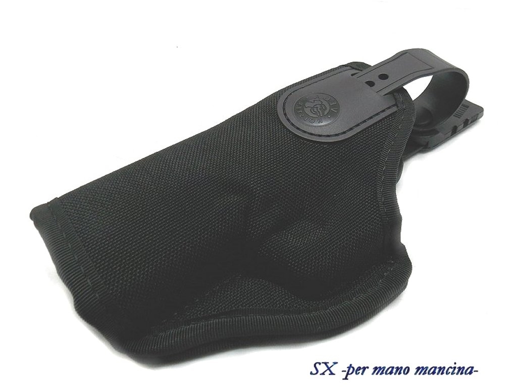 Fondina da cintura in cordura dotata di sgancio rapido con sistema di sicura vega stop snap. Posizione inclinata fianco destro. Le due asole del passante sono per cinture alte 4 cm e sono predisposte pure per cinturoni alti 6 cm. Disponibile per large auto tipo beretta 92, 98, px4 storm, 8000, 9000, 84, beretta apx, revolver 2 e 4 pollici, glock 17, 19, 20, 23, 25, 27, 29, 32, 38, 42,43, colt 1911, sig sauer p225, p228, p229, walther pps, ppq, p99q, p99. Peso lordo: 120 grammi. Prodotto in Italia.