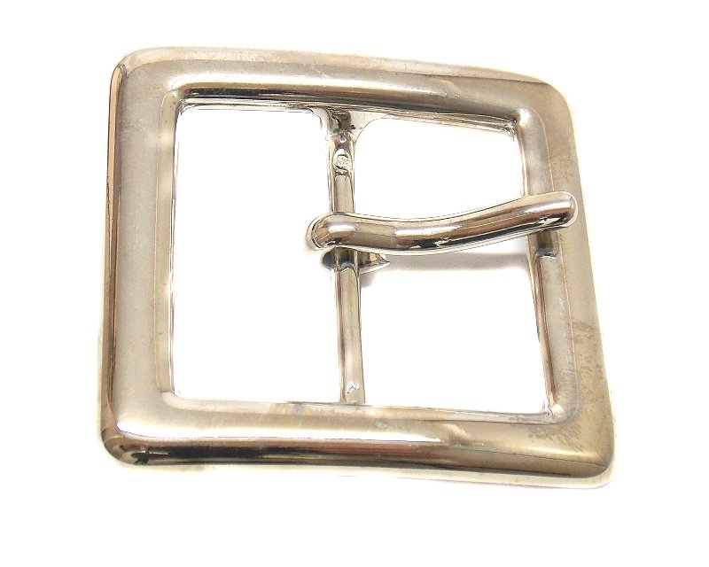 Fibbia in metallo con un ardiglione, per cinturoni alti 4 cm. Fibbia di ricambio per cinturoni con codice: 81619153, 81518609. Barra tonda sul retro. Finitura lucida. Peso lordo: 60 grammi. Prodotto in Italia.
