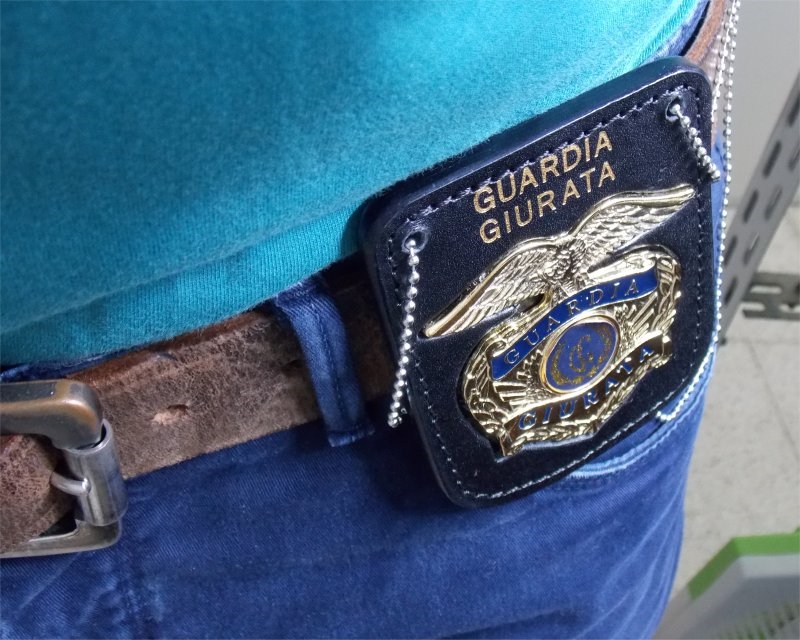Porta placca in pelle da collo e cintura con placca Guardia Giurata. Dimensioni: lunghezza 10,5 cm, larghezza 8 cm. Dotato sul retro di clip in polimero per metterlo ala cinto. L'acquisto non istituzionale di questo articolo è consentito esclusivamente a coloro che dimostrino la propria Titolare appartenenza a quell'Istituto di Vigilanza, Corpo di Polizia, Ente, Ministero e Associazione che rappresenta il distintivo contenuto in questo prodotto. Ogni abuso o cessione impropria di questo prodotto è considerato reato. Peso lordo: 100 grammi. Prodotto in Italia.