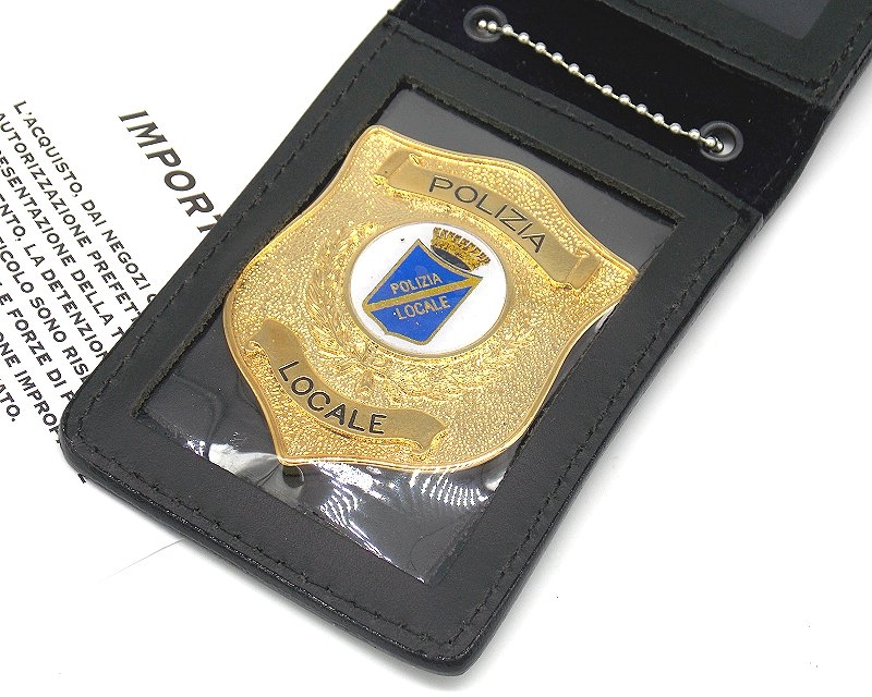 Porta placca con chiusura a calamita, in pelle da collo con placca Polizia Locale. Dimensioni: lunghezza 11 cm, larghezza 7,5 cm. L'acquisto non istituzionale di questo articolo è consentito esclusivamente a coloro che dimostrino la propria titolare appartenenza a quell'Istituto di Vigilanza, Corpo di Polizia, Ente, Ministero e Associazione che rappresenta il distintivo contenuto in questo prodotto. Ogni abuso o cessione impropria di questo prodotto è considerato reato. Peso lordo: 105 grammi. Prodotto in Italia.