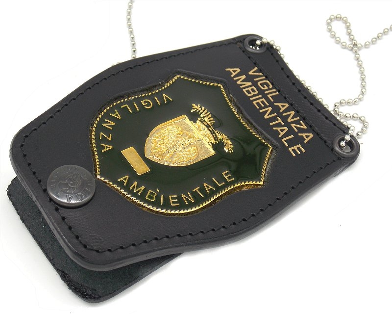 Porta placca in pelle da collo e cintura con placca Vigilanza Ambientale. Dimensioni: lunghezza 11 cm, larghezza 8 cm. Dotato di retro passante in cuoio apribile per cintura. L'acquisto non istituzionale di questo articolo è consentito esclusivamente a coloro che dimostrino la propria Titolare appartenenza a quel Istituto di vigilanza, Corpo di Polizia, Ente, Ministero e Associazione che rappresenta il distintivo contenuto in questo prodotto. Ogni abuso o cessione impropria di questo prodotto è considerato reato. Prodotto in Italia. Peso lordo: 145 grammi.