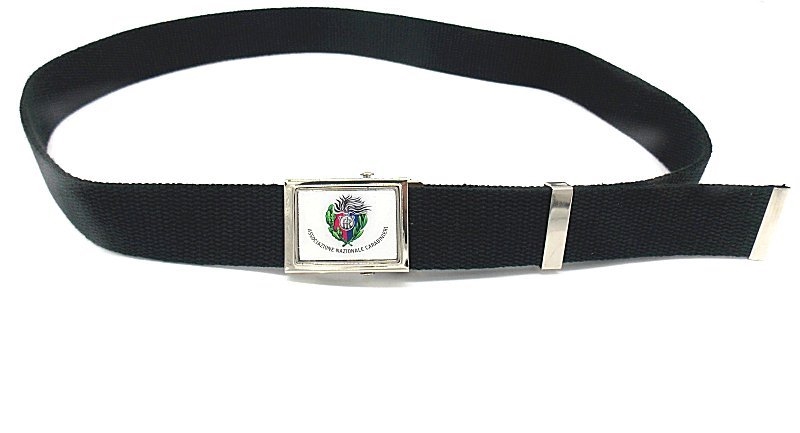 Cintura in canapa nera con fibbia Associazione nazionale Carabinieri. Misura regolabile. Altezza cintura 4 cm. Peso lordo: 155 grammi. Prodotto in Italia.