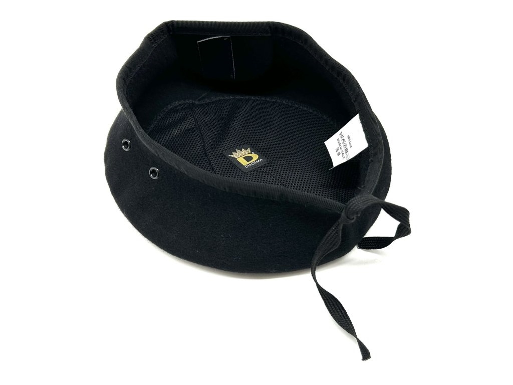 Basco in 94% lana e 6% nylon con rifinitura bordo nero in tessuto. Colore: nero per l'esercito. Misure disponibili dalla 54 alla 62. Prodotto in Italia. Peso lordo: 60 grammi.