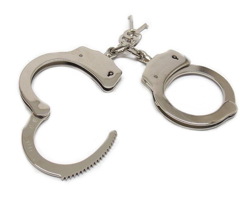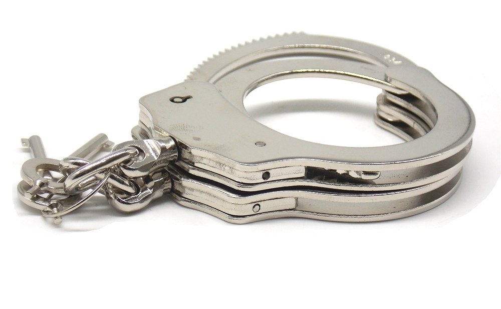 Manette in lega nichelata con 2 chiavi in dotazione. Con sistema di doppio bloccaggio che evita ogni movimento di ulteriore restringimento della manetta al polso (dopo avere chiuso le manette ai polsi fino alla misura sufficiente, premendo con la punta opposta della chiave della manetta sul foro presente nel bordo della manetta). Vendita riservata esclusivamente agli appartenenti alle Forze Armate. Ogni paio di manette ha inciso il numero di matricola di produzione. Prodotto in Taiwan. Peso lordo: 265 grammi.