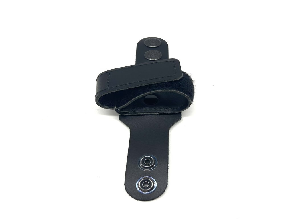 Porta Guanti in pelle con passante cintura a Doppio bottone a pressione.Regolazione con velcro. Colore nero .