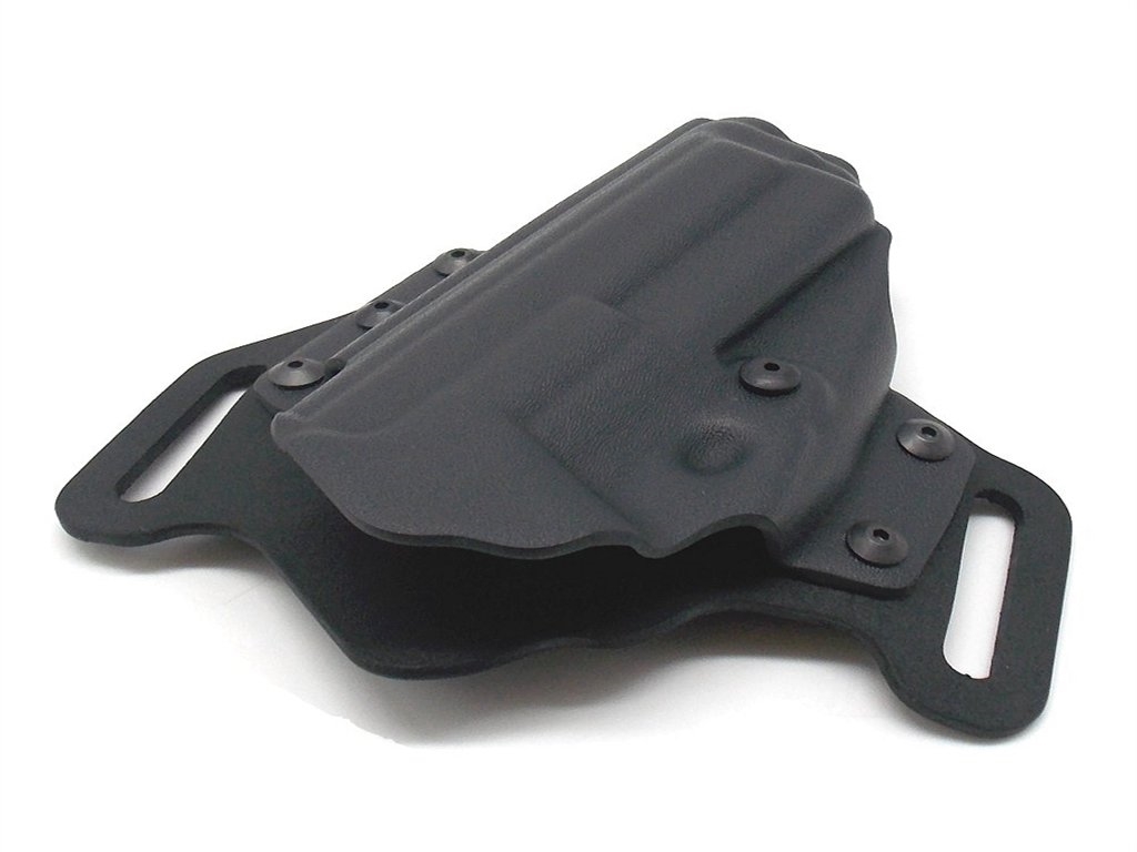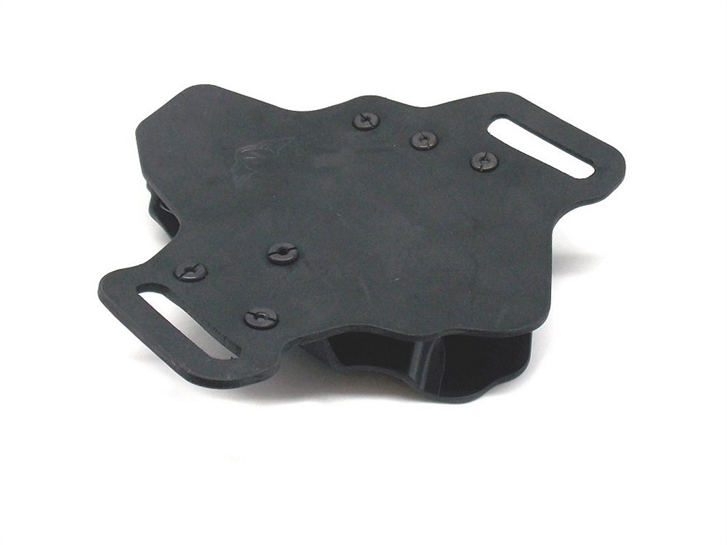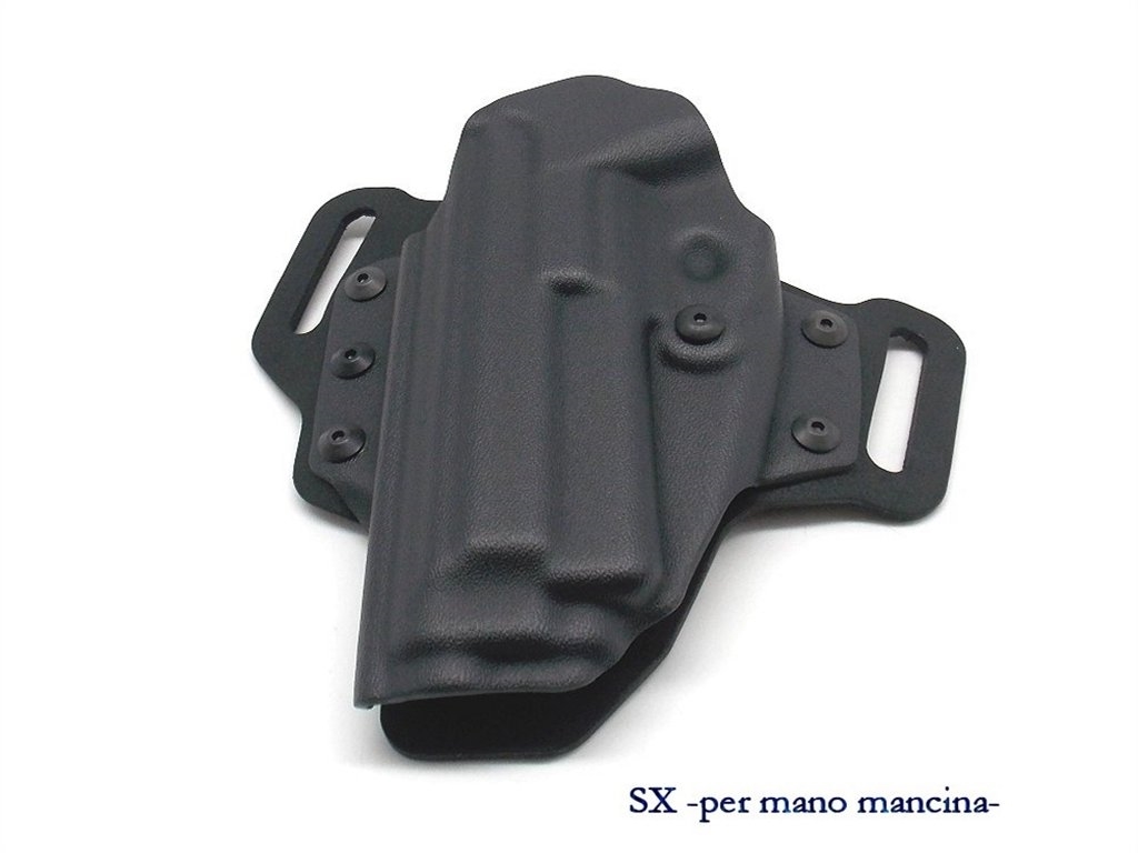 Fondina in poliform e gomma per il porto in posizione alta in cintura con 2 asole per cinturoni altezza cm 4. Sistema di sicurezza con vite di regolazione che agisce sulla guardia del grilletto tramite la particolare forma a goccia. Colore nero per beretta 92 o 90 two. Prodotto in Italia. Peso lordo: 185 grammi.