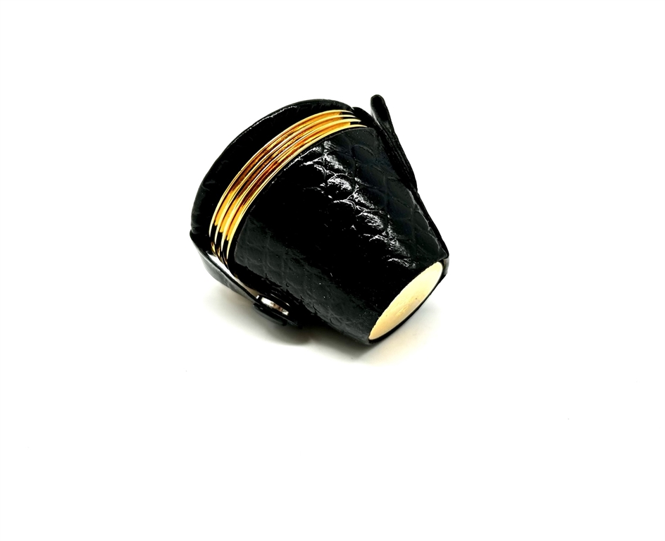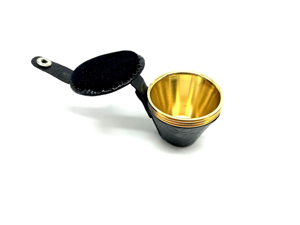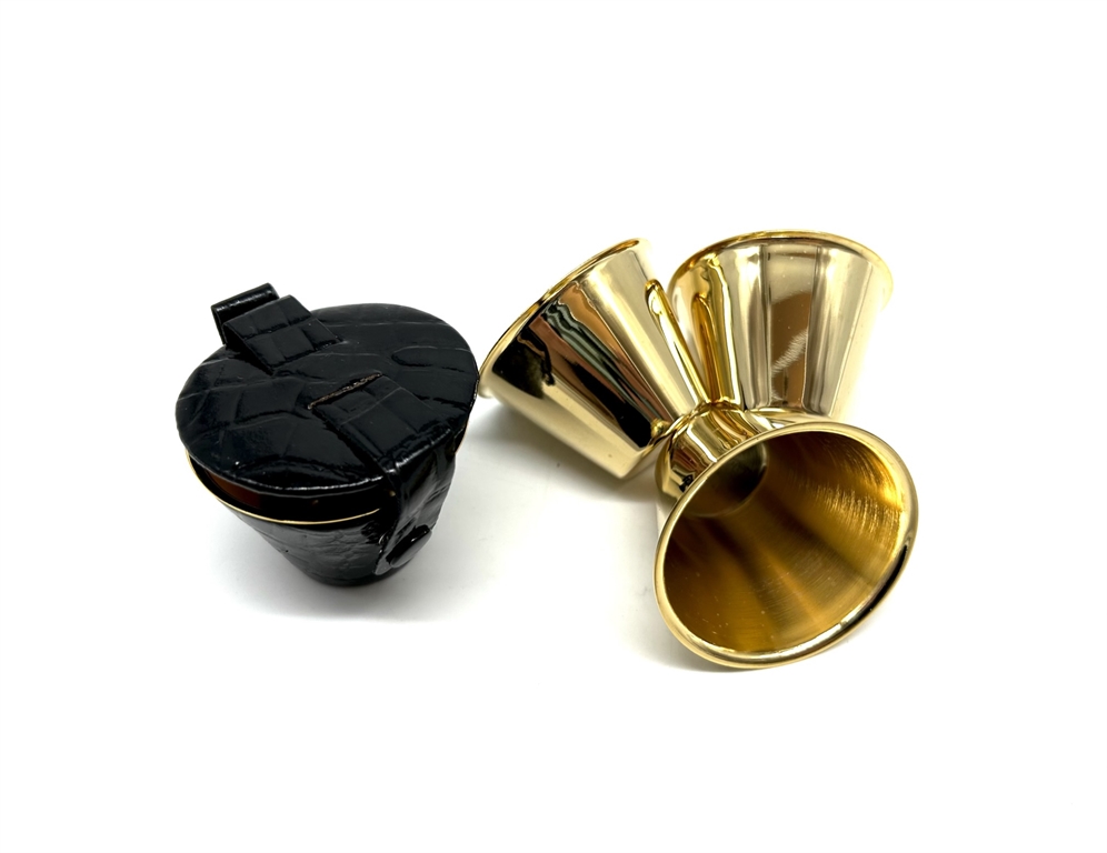 Bicchierini in metallo dorato alto cm 4, diametro superiore cm 5 e diametro inferiore cm 2,5. Dotati di custodia. Confezione da 4 pezzi. Peso lordo: 100 grammi.