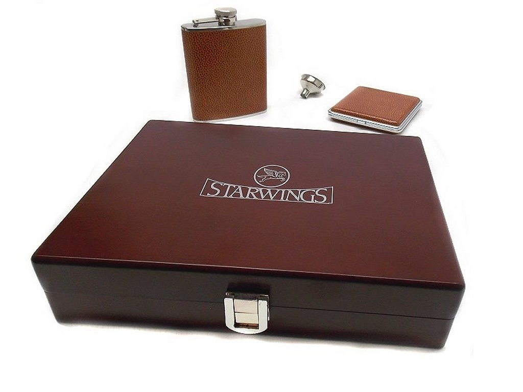 Fiaschetta in acciaio e porta sigarette rivestite pelle Starwings