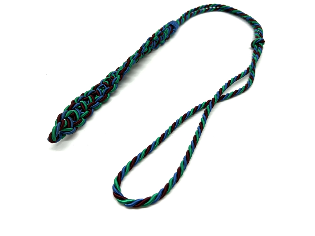 Cordone in nylon, colore verde, blu, amaranto per camicia banda musicale. Lunghezza totale da 84 a 88 cm. Peso lordo: 48 grammi. Prodotto in Italia.