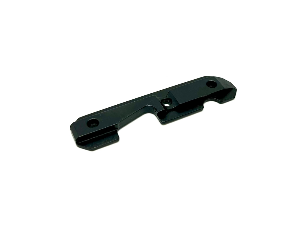 Adattatore in acciaio dotato di tre perni con dado. Lunghezza 10,4 cm, larghezza massima 2,5 cm. Distanza centro fori tra il primo e il secondo foro 3,2 cm, tra il secondo e terzo foro 4,7 cm. Compatibile con l'attacco UTG MTU016. Peso lordo: 85 grammi.