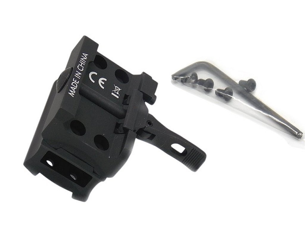 Attacco in metallo a sgancio rapido compatibile con slitte Picatinny/Weaver. Altezza 3 cm. Larghezza di aggancio 1,5 cm. Peso lordo: 95 grammi.
