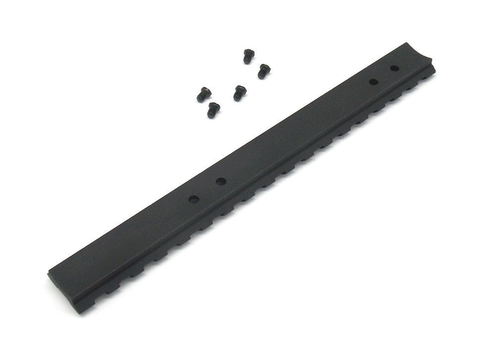 Base in alluminio da applicare su Browning Bar e similari. Lunghezza 17,5 cm, altezza 0,8 cm. Fornito con viti di fissaggio. Peso lordo: 45 grammi.