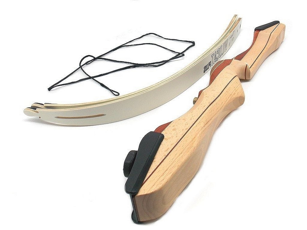 Arco scuola in legno naturale smontabile con in dotazione: corda, poggia freccia. Lunghezza arco montato 158 cm. Disponibile anche mancino. Peso lordo: 1310 grami. Prodotto in Italia.