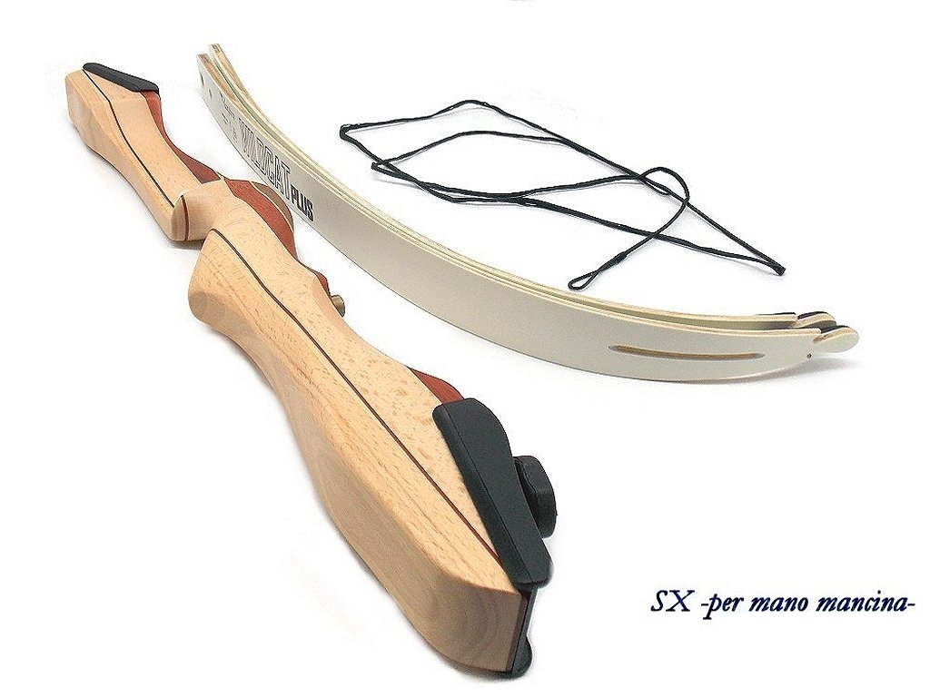 Arco scuola in legno naturale smontabile con in dotazione: corda, poggia freccia. Lunghezza arco montato 164 cm. Disponibile anche mancino. Peso lordo: 1310 grammi. Prodotto made in Italy.