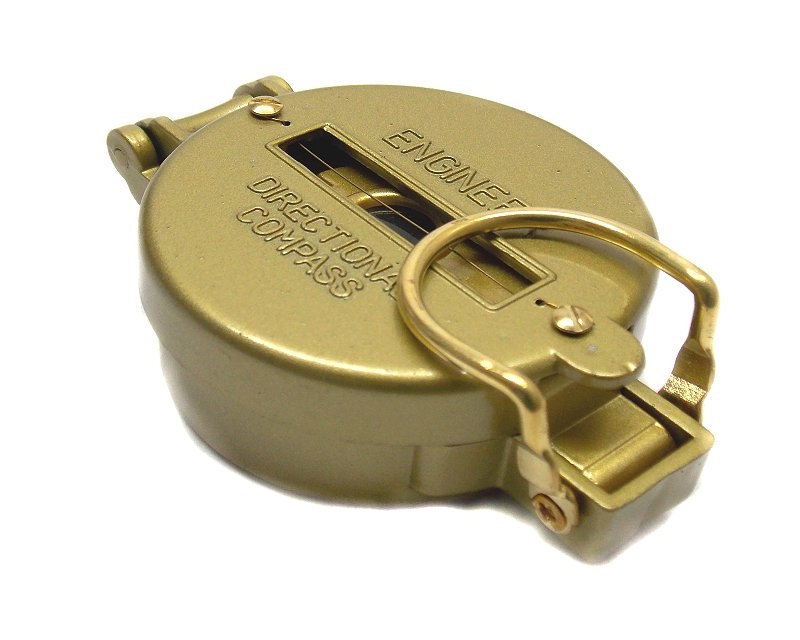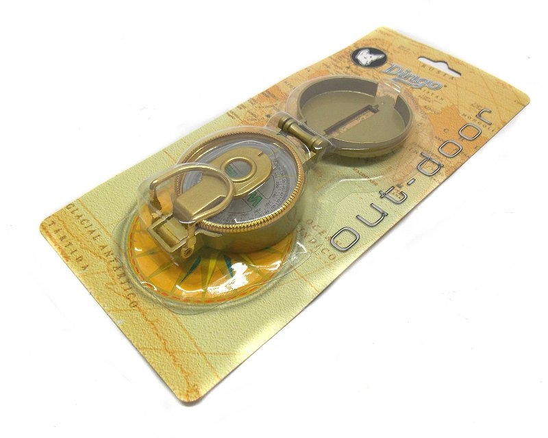 Bussola in metallo dorato ad olio. Completa di sistema di puntamento. Diametro 5 cm. Peso lordo: 72 grammi.