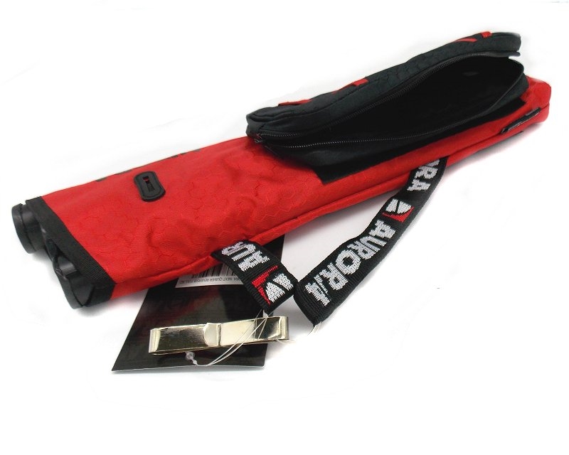 Faretra in nylon rosso. Dotata di gancio per appenderla direttamente ai passanti o alla cintura.La tasca portaoggetti è mantenuta in posizione da una striscia di velcro. Se non utilizzata può essere tolta e riposta, mentre va spostata sul un lato oppure su quello opposto per utilizzare la faretra come destra o sinistra. Lunghezza 47 cm, larghezza 11,5 cm. Peso lordo: 400 grammi.