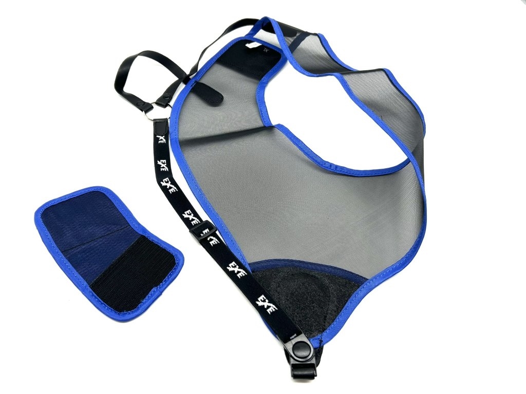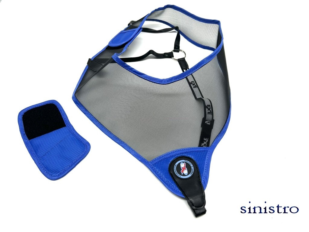 Paraseno in nylon retinato. Misura regolabile. Peso lordo: 80 grammi. Disponibile per destri e mancini.