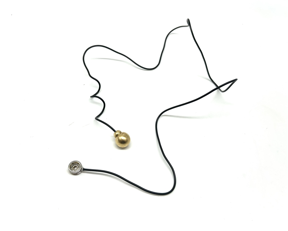 Il cavo antistatico ha un bottone a pressione del diametro interno di 9,70 mm per essere agganciato al contro bottone presente nella stuoia , ed è collegato ad una sfera di ottone lucidato, diametro 18 mm, con filo di rame, lungo 90 cm, che a sua volta si collega alla stuoia antalgica in bioceramica e serve per dissipare tutte le cariche elettrostatiche accumulate durante il giorno. Munito di un particolare diodo che funge da interruttore, dove le correnti vengono dissipate costituendo una porta di chiusura. Il diodo è un componente elettronico passivo, la cui funzione è quella di permettere il flusso di corrente elettrica in un verso e di bloccarla nell'altra. Peso lordo: 31 grammi