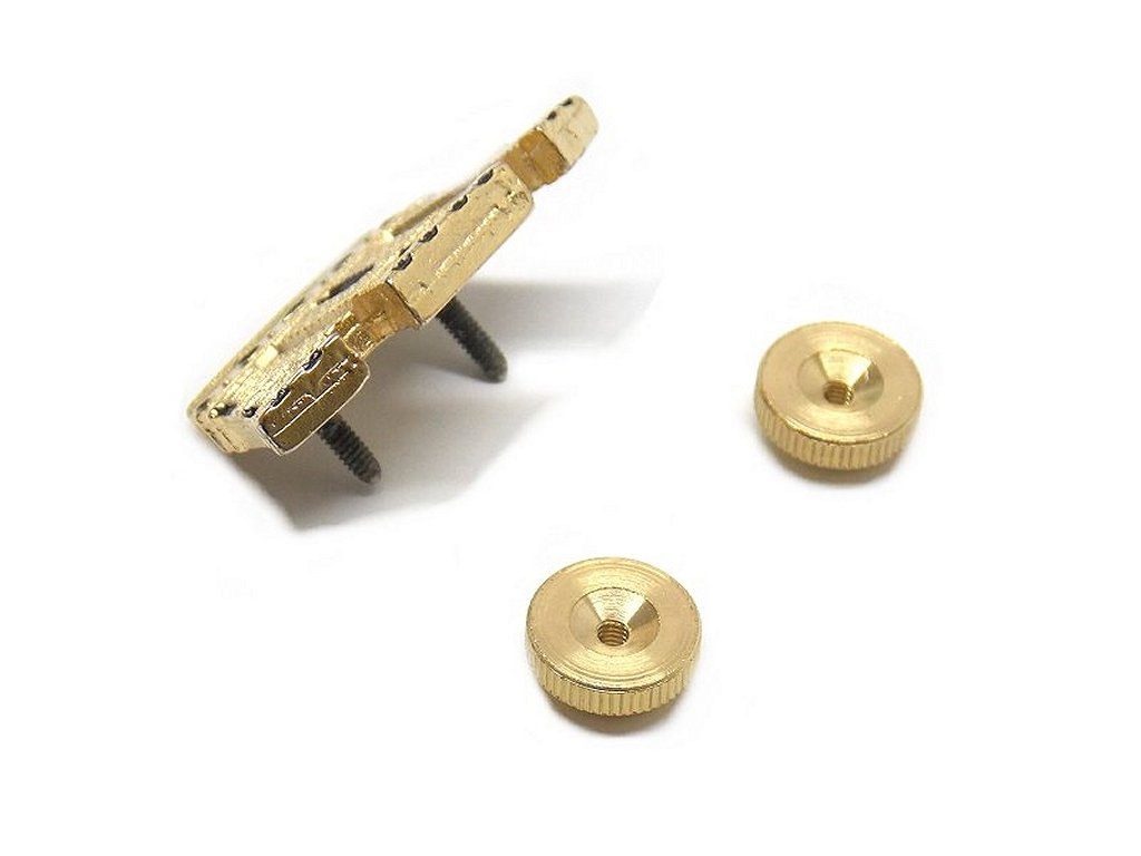 Torre dorata con 2 viti in metallo e dadi torniti. Misure altezza max mm 20 e larghezza max mm 34. Peso lordo: 12 grammi. Prodotto in Italia.