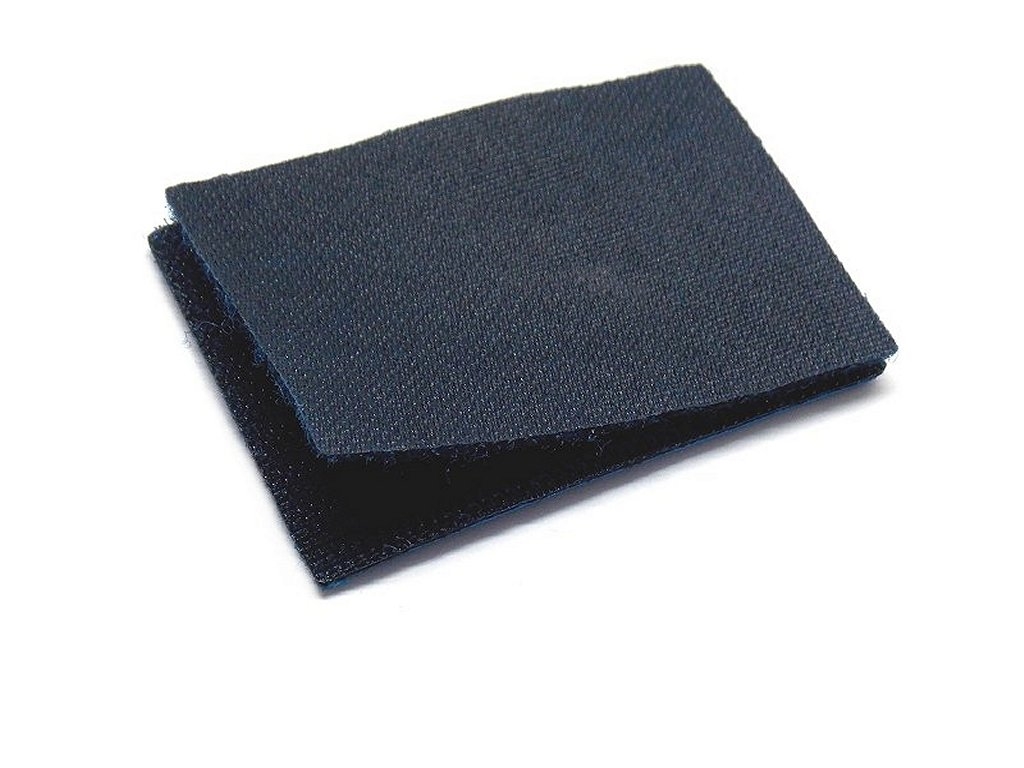 Rettangolo di panno blu notte con bordo in cornice celeste. Dimensione: 7,3x5,3 cm. Ideale per essere cucito su tuta operativa e maglione. Peso lordo: 6 grammi
