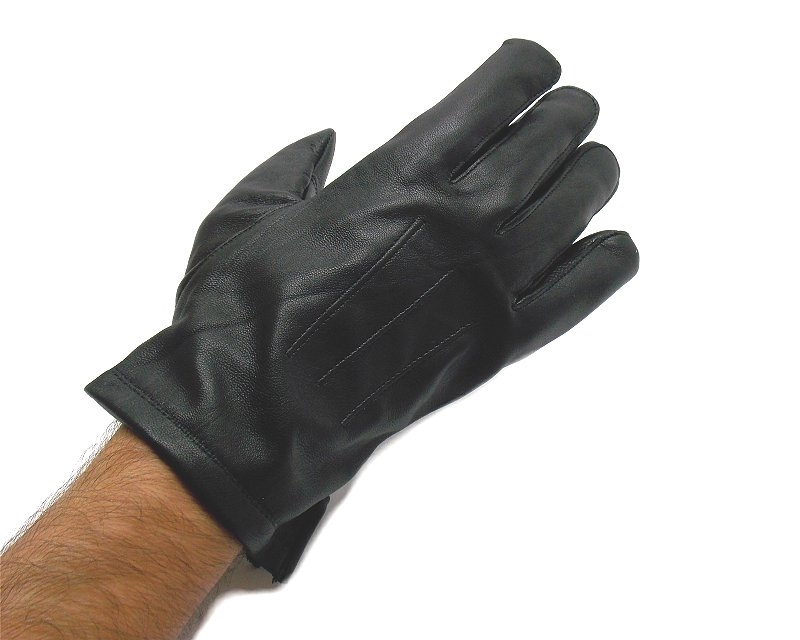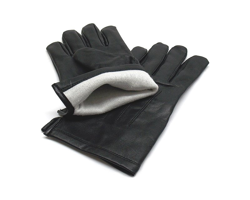 Guanti in pelle bovina nera di prima scelta con cuciture a riporto, foderati con leggera lanina cotonata bianca. Misure disponibili: s, m, l, xl, xxl. Per scegliere la taglia seguire le indicazioni riportate nella foto. Peso lordo: 90 grammi.