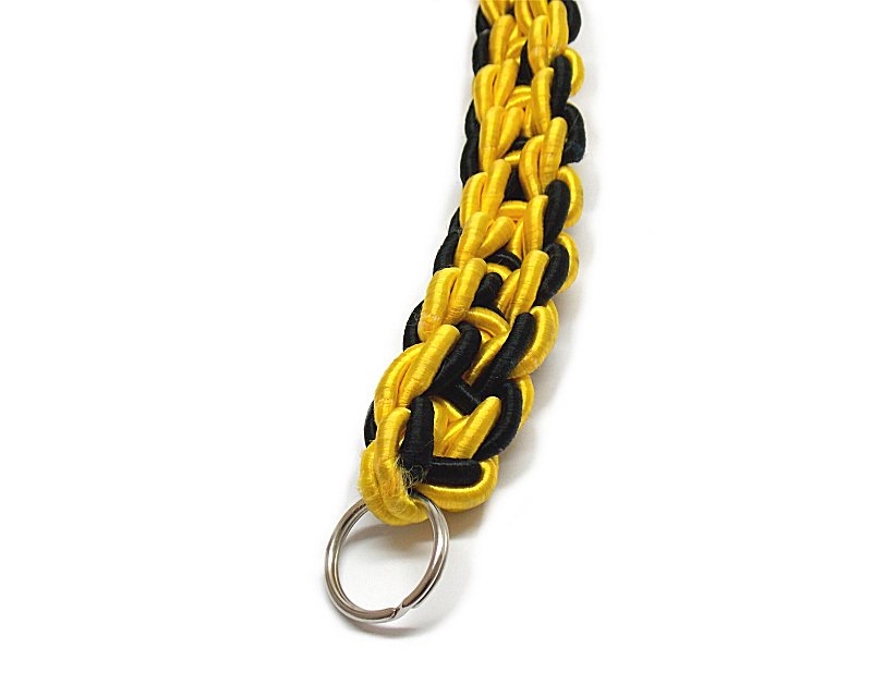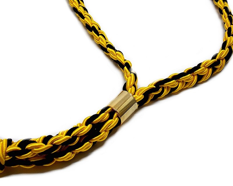 Cordone in tessuto lucido. Lunghezza circa 99 cm. Interamente intrecciato. Colore giallo, nero. Peso lordo: 92 grammi.
