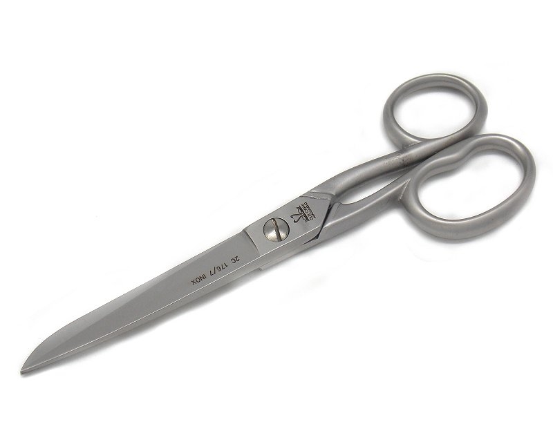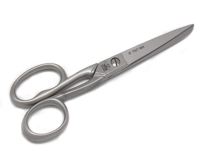 Forbici da sartina in acciaio inox sabbiata. Lunghezza 17,5 cm. Prodotto in Italia. Peso lordo: 95 grammi.