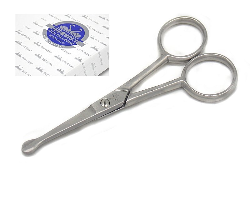 Forbici in acciaio satinato per togliere i peli del naso. Lunghezza 10,5 cm. Prodotto in Italia. Peso lordo: 23 grammi.