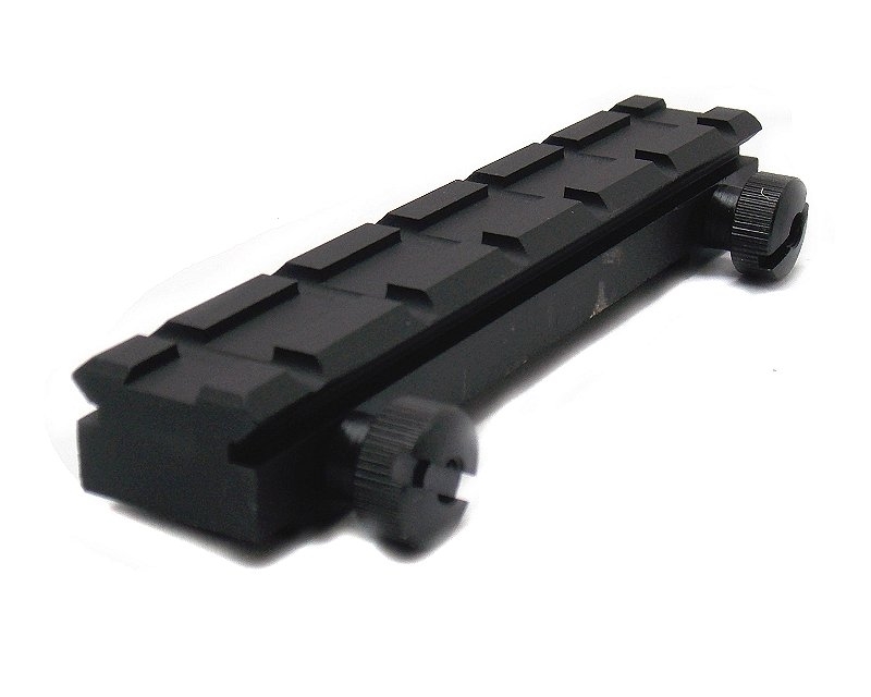 slitta in metallo, lunghezza 8,5 cm la base si rialza di 10 mm distanza tra le scanalature 5 mm slitta weaver su weaver. peso lordo: 85 grammi.